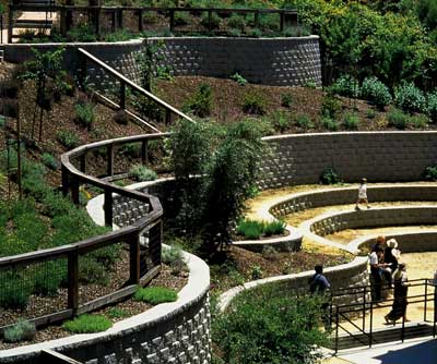 Miller felt that, “Design flexibility and constructibility were the primary considerations for choosing the StoneWall SELECT units. This segmental retaining wall system allowed us to make use of this difficult site in a way that is both functional and pleasing to the eye. The size of the unit allows complex layouts, such as the curved walls required by this design, to be easily constructed. Using StoneWall SELECT retaining walls adds an additional level of interest to the site.” The scale blends beautifully with the residential community which the gardens serve. Miller created an amphitheater, with some of the walls providing seating, while preserving a sense of intimacy. |