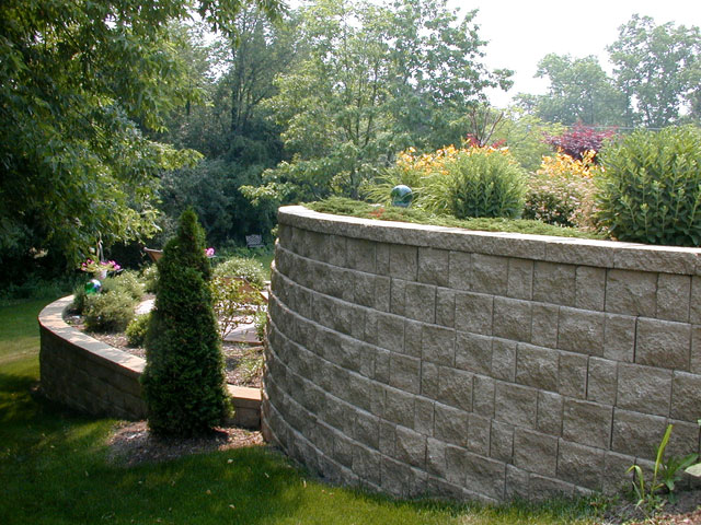 Curvilinear walls. The StoneWall SELECT system is flexible in building a variety of curves and shapes. It allowed Dresen to design gracefully rounded and serpentine walls, with scarcely a straight line anywhere.