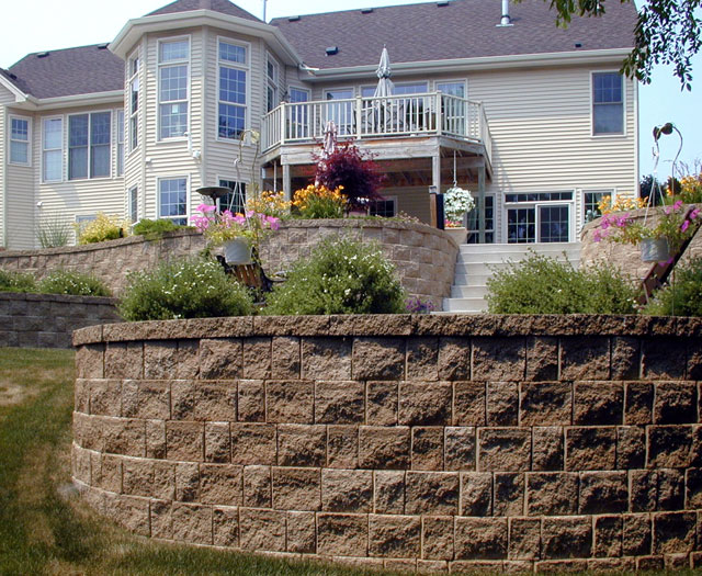 Dresen recommended the StoneWall® SELECT® SRW system from ICD Corporation, Milwaukee, WI. Many of his 100+ walls have used this system, and he knew a StoneWall SELECT wall would be attractive, strong, stable and long-lasting. “Strength and stability always come first,” he says, “pretty, weak walls serve neither the contractor nor the homeowner.” Other key factors included: